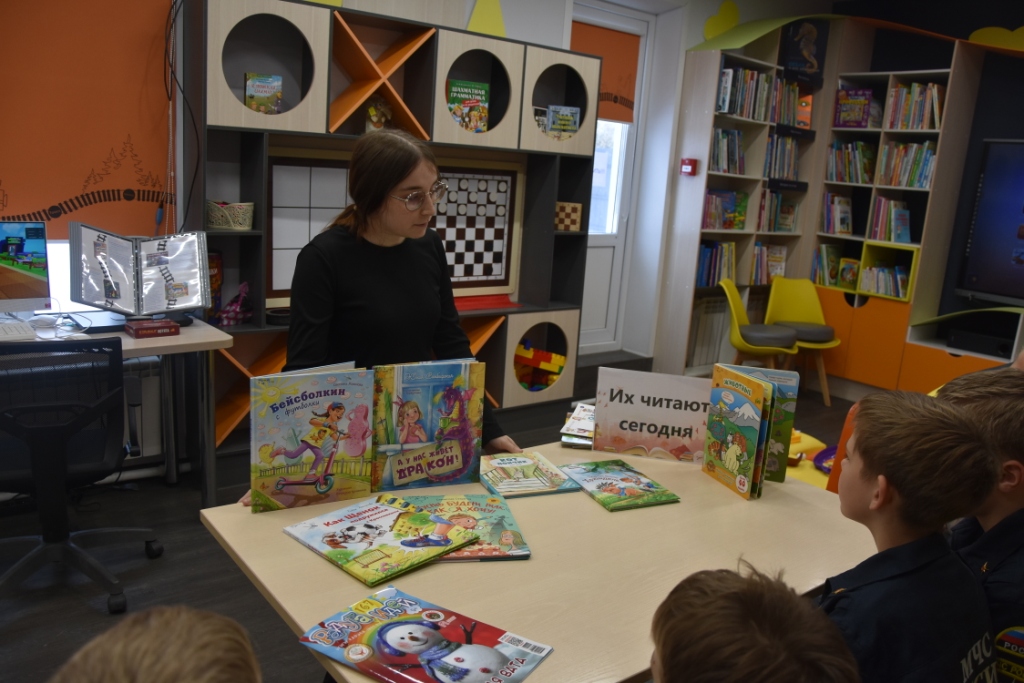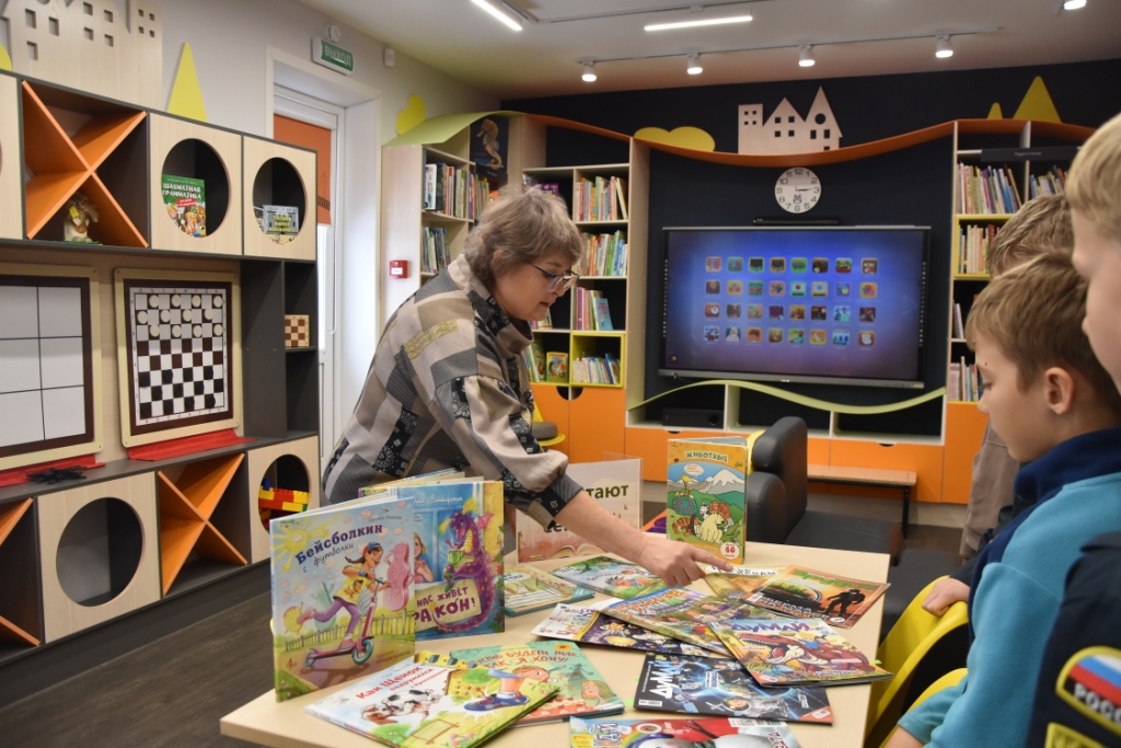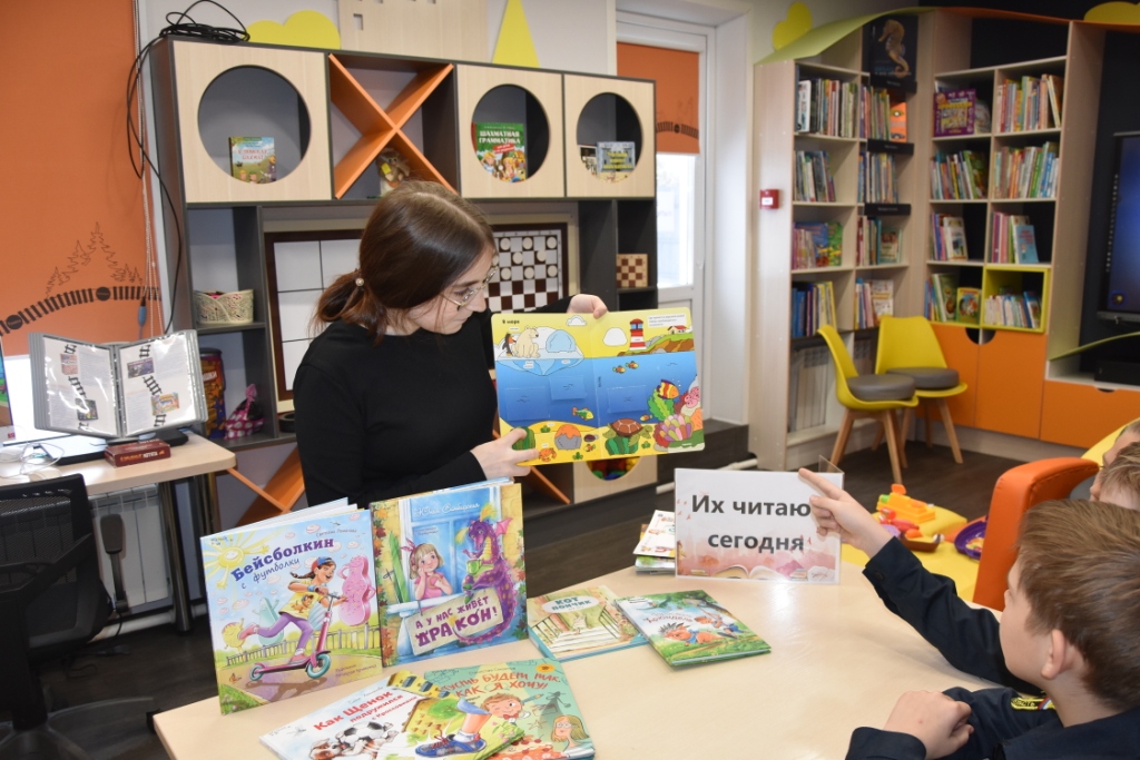 Затем Виктория Денисовна провела для детей "Встречу с книгой", представив новинки современной детской литературы. Среди них были комикс "Кот Пончик", повести "Пусть будет так, как я хочу" и "Бейсболкин с футболки", а также добрая история "Как щенок подружился с кроссовками". Однако настоящим хитом стала необычная книга-игра с заданиями и окошками. Дети с радостью брали её в руки и с азартом выполняли все предложенные задания, с восторгом открывая секретные створки.