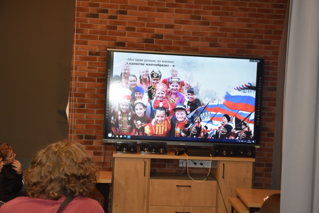 Для закрепления материала участники беседы посмотрели тематический видеоролик, который наглядно показал, какая великая и многонациональная страна — Россия. В фильме подчеркивалась простая, но важная истина: сила России — в единстве ее народов.