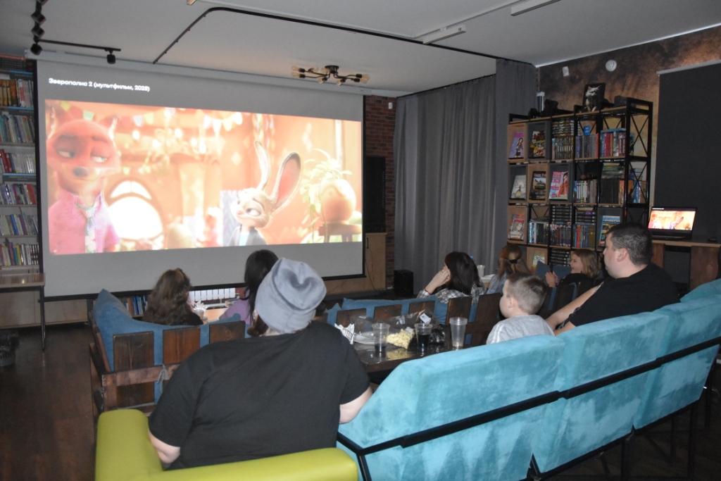 В Мошковской детской библиотеке в субботу, 24 января, было особенно шумно, весело и аппетитно! Клуб «Чибис» провел очередную встречу в рамках семейной фильмотеки «Папа, мама, я и кино», и на этот раз она прошла с настоящим киноантуражем. Юные зрители и их родители отправились в захватывающее путешествие в звериный мегаполис. Но перед началом мультфильма всех ждал приятный сюрприз: каждый мог почувствовать себя в настоящем кинотеатре с порцией хрустящего попкорна и стаканчиком прохладного лимонада! С таким угощением просмотр стал ещё более праздничным и запоминающимся. Мультфильм, любимый и детьми, и взрослыми, смотрели на одном дыхании. А после сеанса родители с улыбкой отмечали, как умело создатели истории через приключения крольчихи Джуди и лиса Ника говорят с юными зрителями о важных вещах: целеустремлённости, доверии и вере в себя. «Всем понравилось!» — эта простая и самая точная фраза стала главным итогом дня. Совместный смех во время смешных сцен, тишина в моменты переживания за героев и счастливые улыбки — лучшая награда для организаторов. Семейная фильмотека «Папа, мама, я и кино» — это не просто просмотр мультфильмов. Это возможность провести выходной день вместе, в теплой атмосфере библиотеки, найти новых друзей и обсудить с детьми важные темы на языке искусства. Приходите в Мошковскую детскую библиотеку всей семьей! У нас всегда интересно!