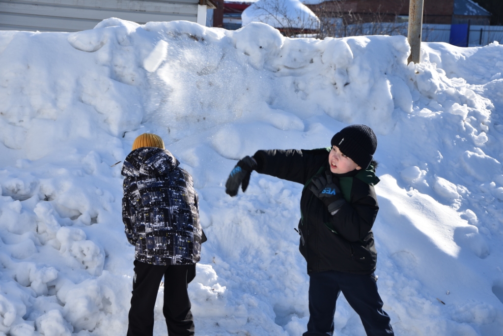 Размяться и как следует повеселиться участники квеста смогли на свежем воздухе. Обворожительная Зима и Русская Девица устроили настоящие снежные баталии: ребята с азартом соревновались в меткости, забрасывая снежки в цель, и мерялись силой в веселых петушиных боях. За удаль и задор они получили масло и молоко.