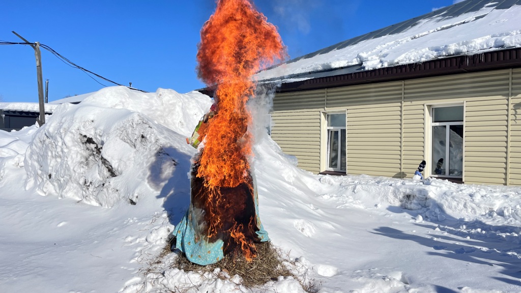Завершился праздник на улице. Гостям рассказали о традициях сжигания чучела у разных народов, после чего проводили Масленицу по русскому обычаю — сожгли чучело под дружные крики. Завершился день в теплой компании за чашкой горячего чая с угощениями от разных народов и, конечно, с пышными блинами с вареньем.