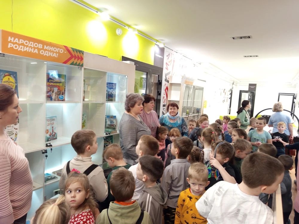 В рамках Всероссийской космической недели детские сады «Улыбка» и «Рябинка» совершили увлекательное путешествие в детскую библиотеку. Поводом для этих визитов стал познавательный час под названием «Гагарин. Первый в космосе», посвящённый легендарному полёту Юрия Алексеевича Гагарина.