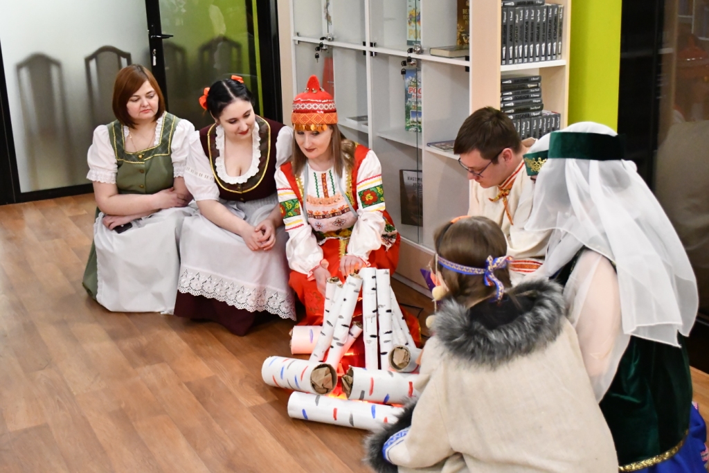 Юных читателей и гостей библиотеки ждала насыщенная программа, главным событием которой стала увлекательная квест-игра «Костер дружбы». Организаторы превратили библиотечное пространство в импровизированное путешествие по многонациональной России.